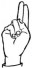 На ћирилици написано АНДРЕЈА БУКИНАЦ састоји се из 14 слова [?]. Исписано ћириличном једноручном азбуком за глувонеме: